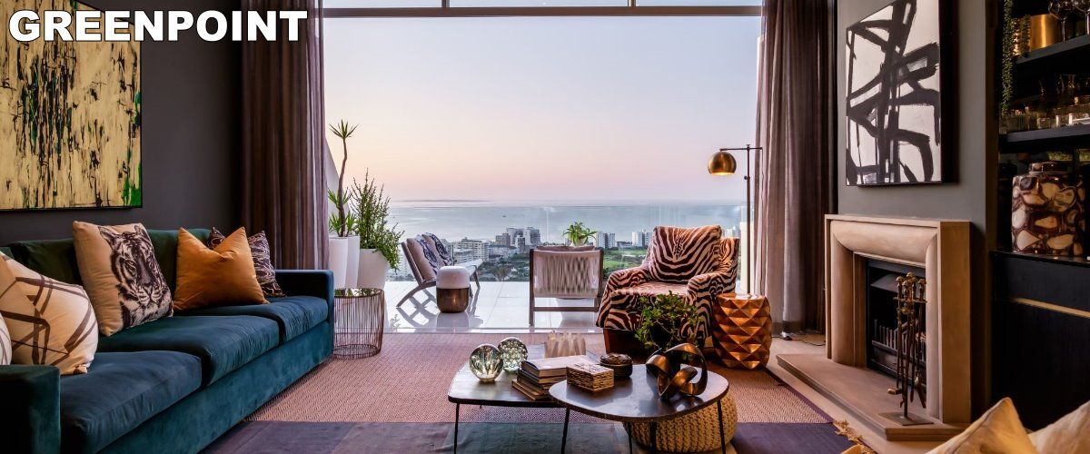clean modern lines, airy open spaces, distant views and crisp interiors with a touch of glam