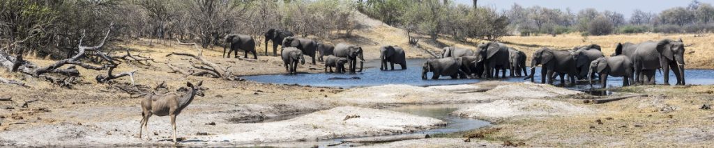 Enormous herds of elephants pass through in the dry season along with a multitude of grazer game spending winter here before migrating towards the Savute for summer