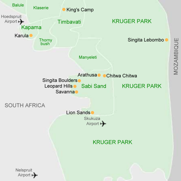 - and finally, the 4 lodges of easy-to-get-to Kapama Reserve.