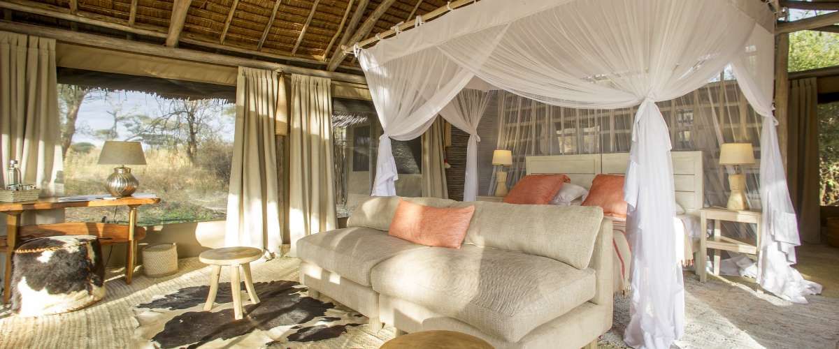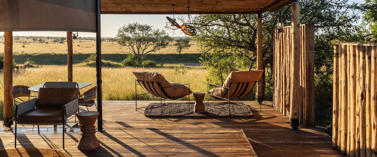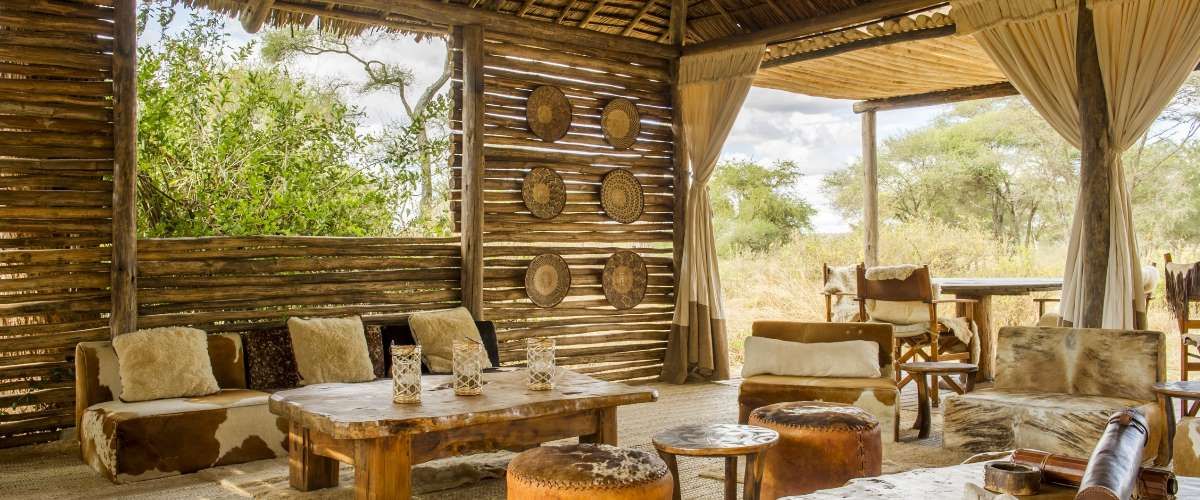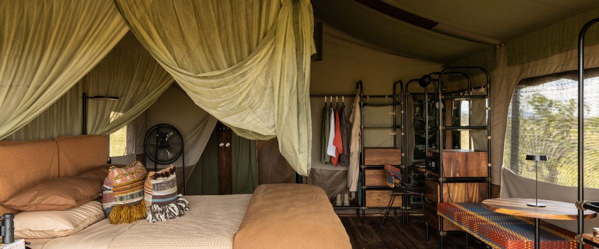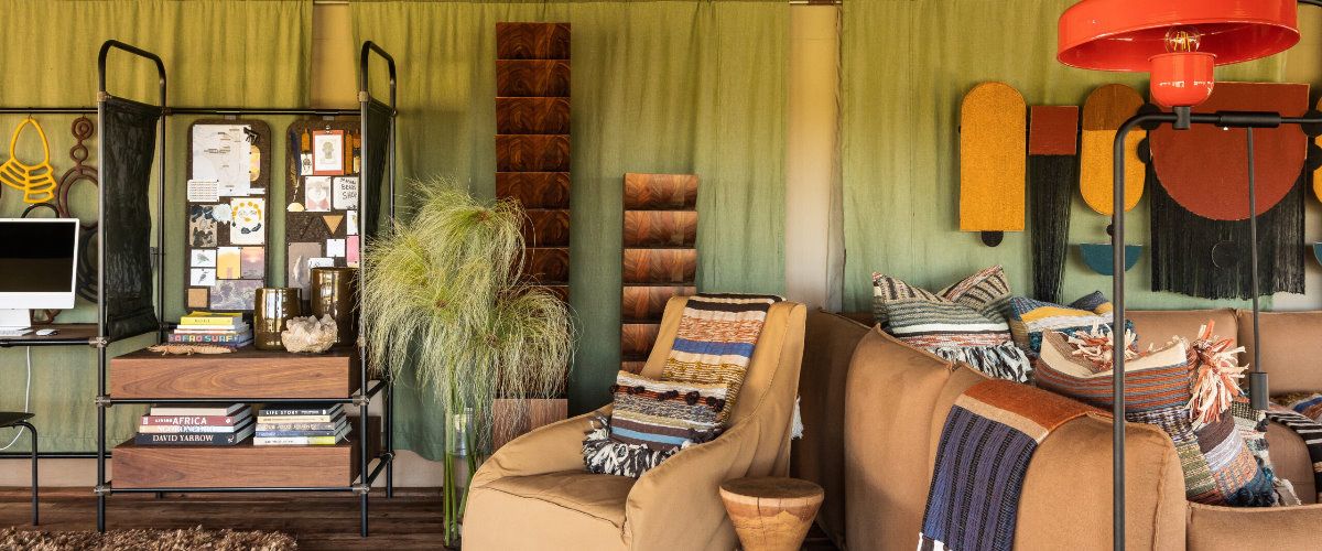 6 nomadic-chic tented suites with art, canvas, stone & raw leather in Maasai colours