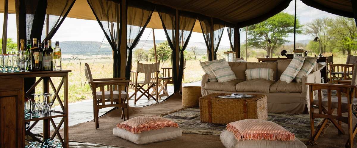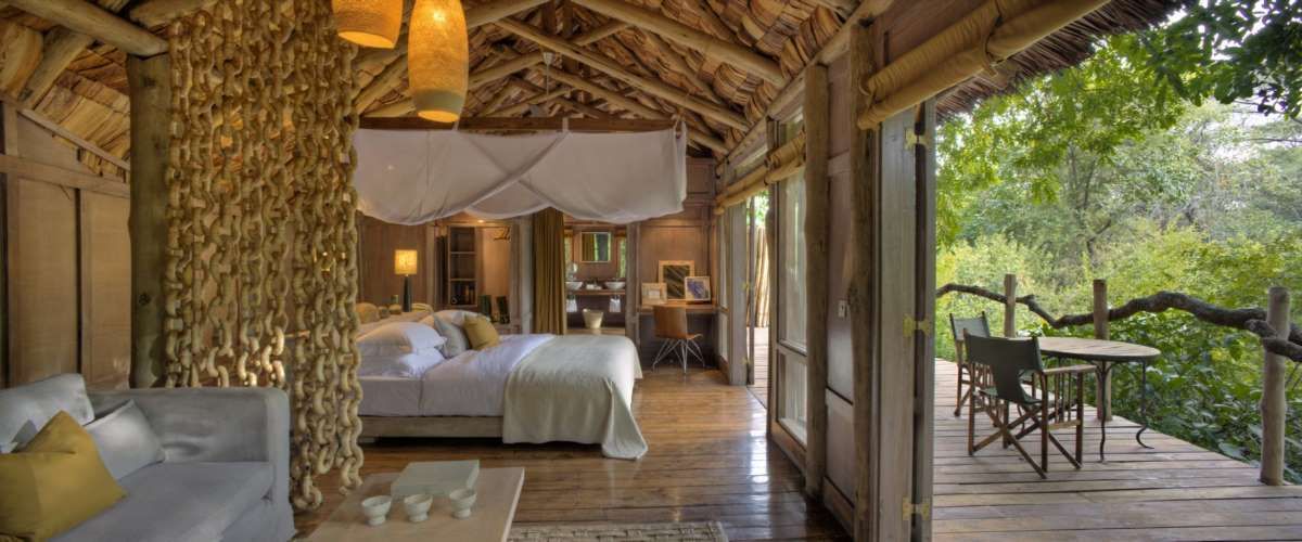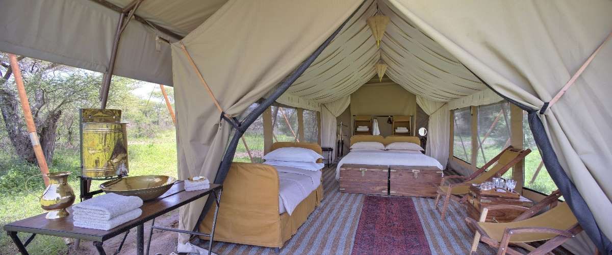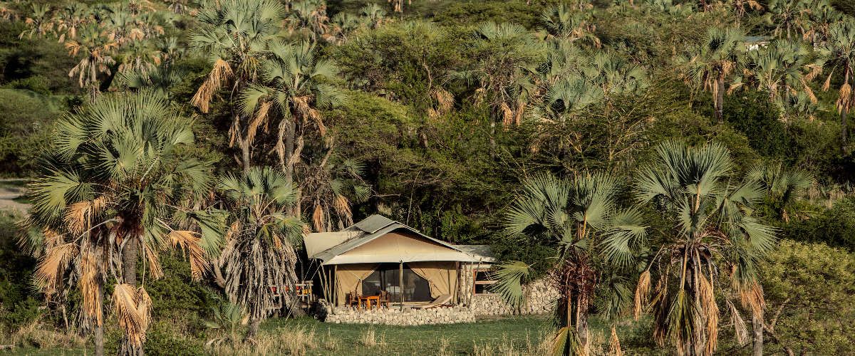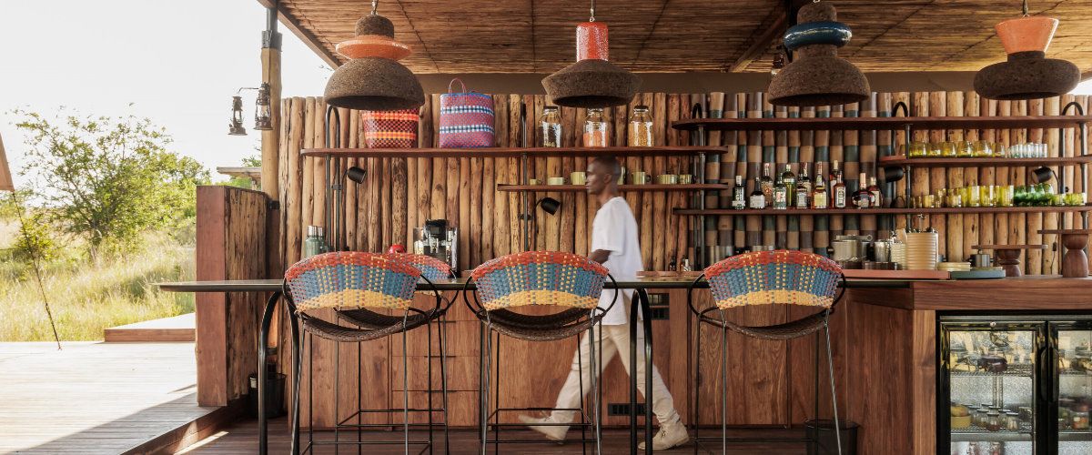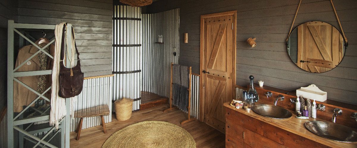 6 nomadic-chic tented suites with art, canvas, stone & raw leather in Maasai colours